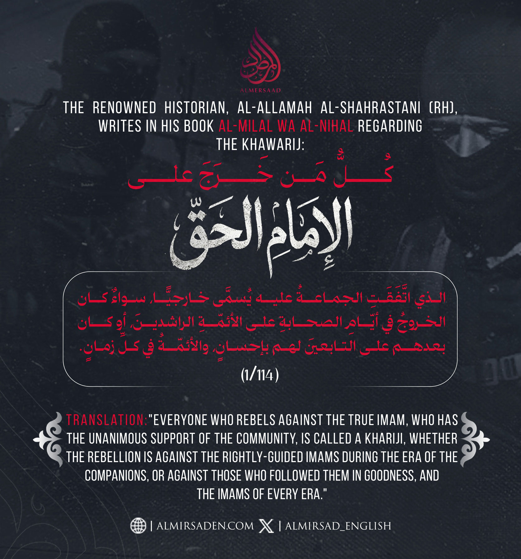 The renowned historian, al-Allamah al-Shahrastani (RH), writes in his book al-Milal wa al-Nihal regarding the Khawarij: April 30, 2026